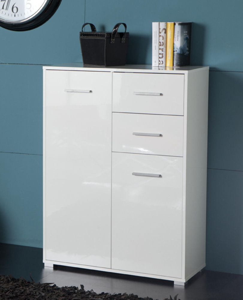 Meuble 2 Portes 2 Tiroirs Cosmo Blanc Brillant