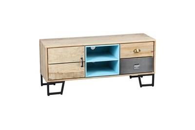 Meuble Tele Industriel 2 Niches Et 4 Tiroirs Bois Et Metal