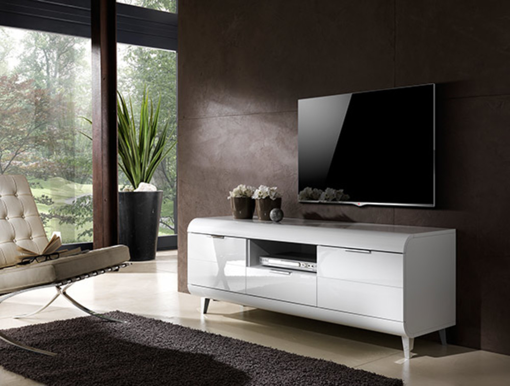 Meuble tv hifi lumineux laque blanc 3 portes 1 tiroir funky. Fidele au style chic il arbore des details de finition peu ordinaires.