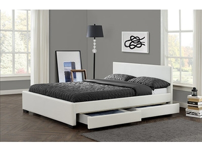 Lit Led Design 160x200 Simili Cuir Blanc Avec Tiroirs De Rangement