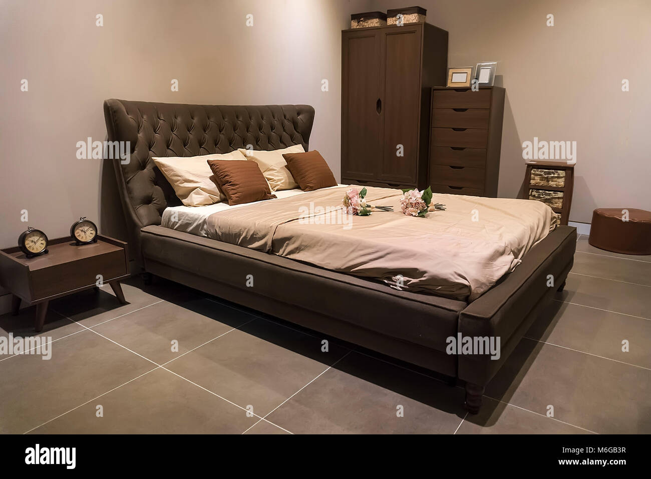 Grand Lit Avec Tete De Lit Haute En Colo Gris Photographie