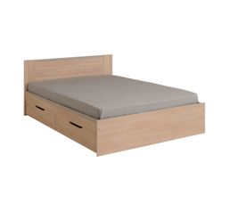 Lit 140x190 Cm Avec 2 Tiroirs Tandem Imitation Chene Et Mastic