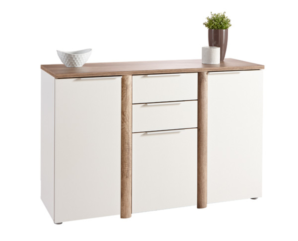 Symbiosis Meuble Desserte 3 Portes 2 Tiroirs Taupe Blanc Buffet