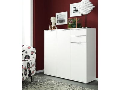 Meuble De Rangement Contemporain 3 Portes 2 Tiroirs Coloris Blanc